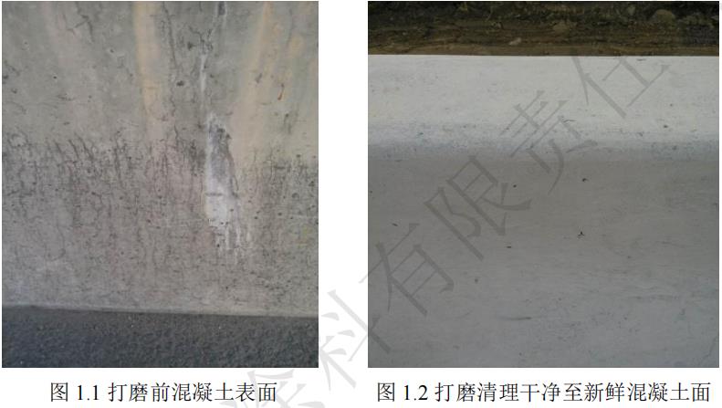 第一道工序:打磨混凝土表面,護欄表面清理干凈至新鮮混凝土