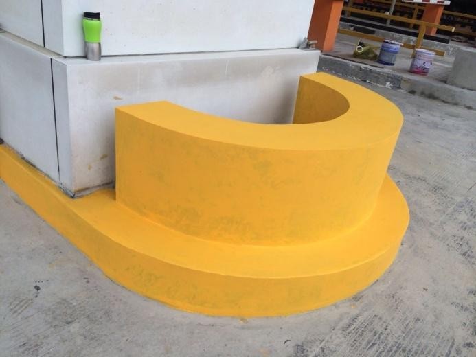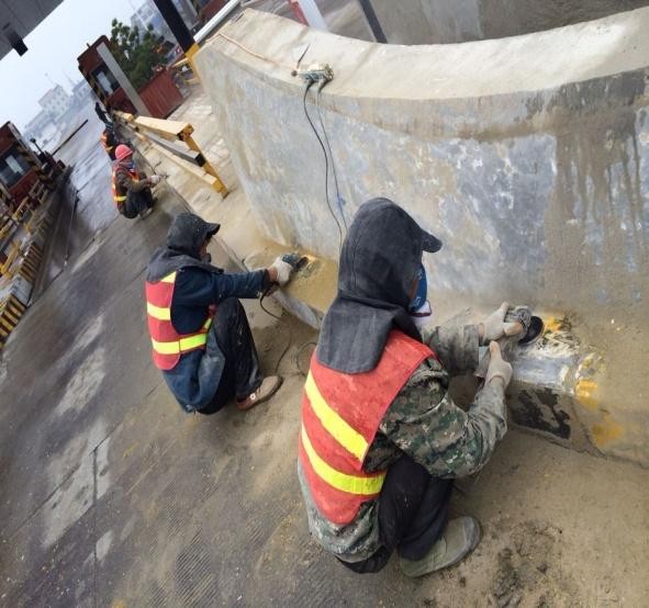 第一道工序:打磨混凝土表面,護(hù)欄表面清理干凈至新鮮混凝土面。將混凝土表面腐蝕掉的、不平整的部分打磨干凈。