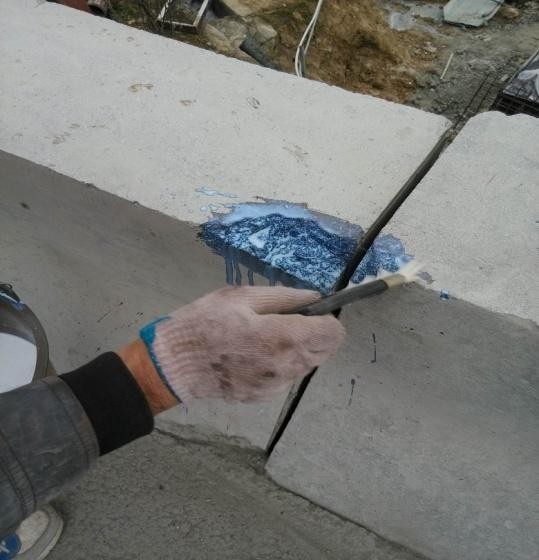 第二道工序:將局部破損較嚴(yán)重區(qū)域采用聚合物砂漿修補(bǔ)平整。先在大的缺陷、裂縫處涂上均勻、足夠的底涂,等其干燥之后用聚合物砂漿將其修補(bǔ)完整。