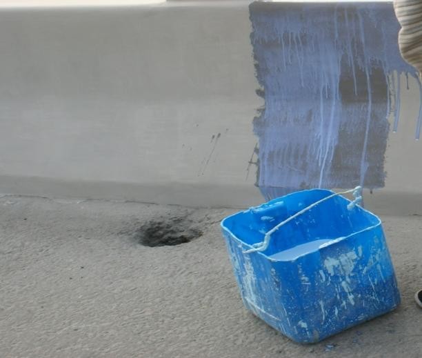閉底涂料。大的表面用滾筒刷子來(lái)回滾平整,小的地方用小刷子刷均勻。用底涂料飽和滲透混凝土表面,堵塞混凝土微孔隙和裂紋。