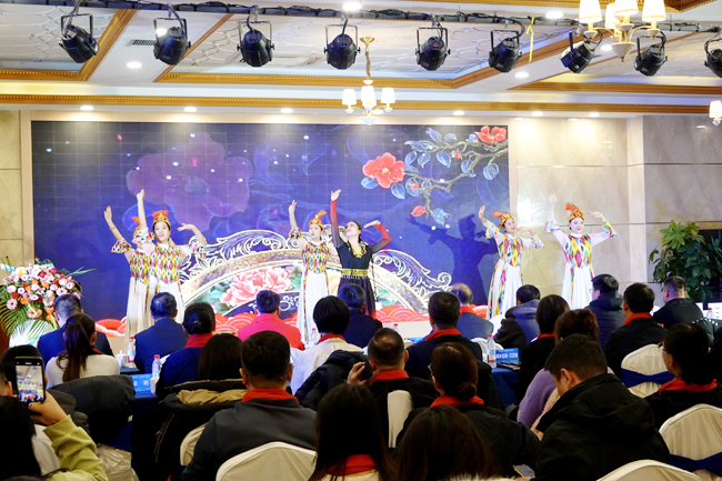 2025年12月30日,在庫爾勒文商旅聯(lián)盟簽約及政策發(fā)布會上,與會人員在觀看文藝表演。(記者 趙爽 攝)