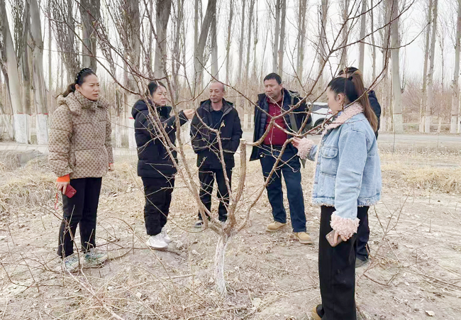 巴州林果技術研究推廣中心專家向果農傳授果樹冬季管護要點。(通訊員 侯麗麗 攝)
