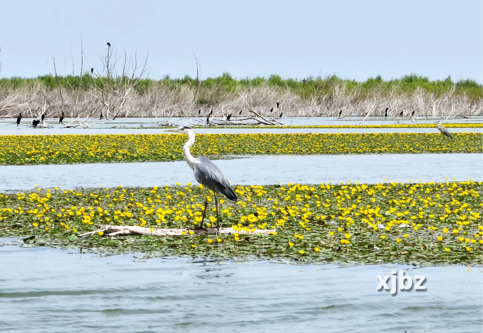荇菜在博斯騰湖湖面上競相綻放。(申凱龍 攝)