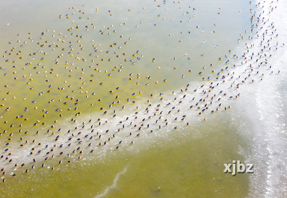 12月8日,上萬(wàn)只綠頭鴨在博斯騰湖棲息覓食,景象十分壯觀。
