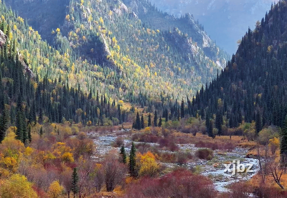 眼下,位于天山深處的和靜縣巴音布魯克鎮“賽罕陶海”峽谷迎來一年中最美的季節。峽谷中,秋草泛黃,與山川相依相偎,潺潺流水與天山云杉纏綿交織,樹林與雪山展現出別樣的美麗,構成一幅秋日的優美畫卷。(文/記者 巴特爾達拉 圖/通訊員 佳布如)