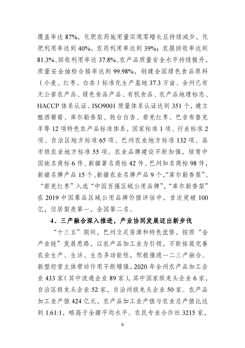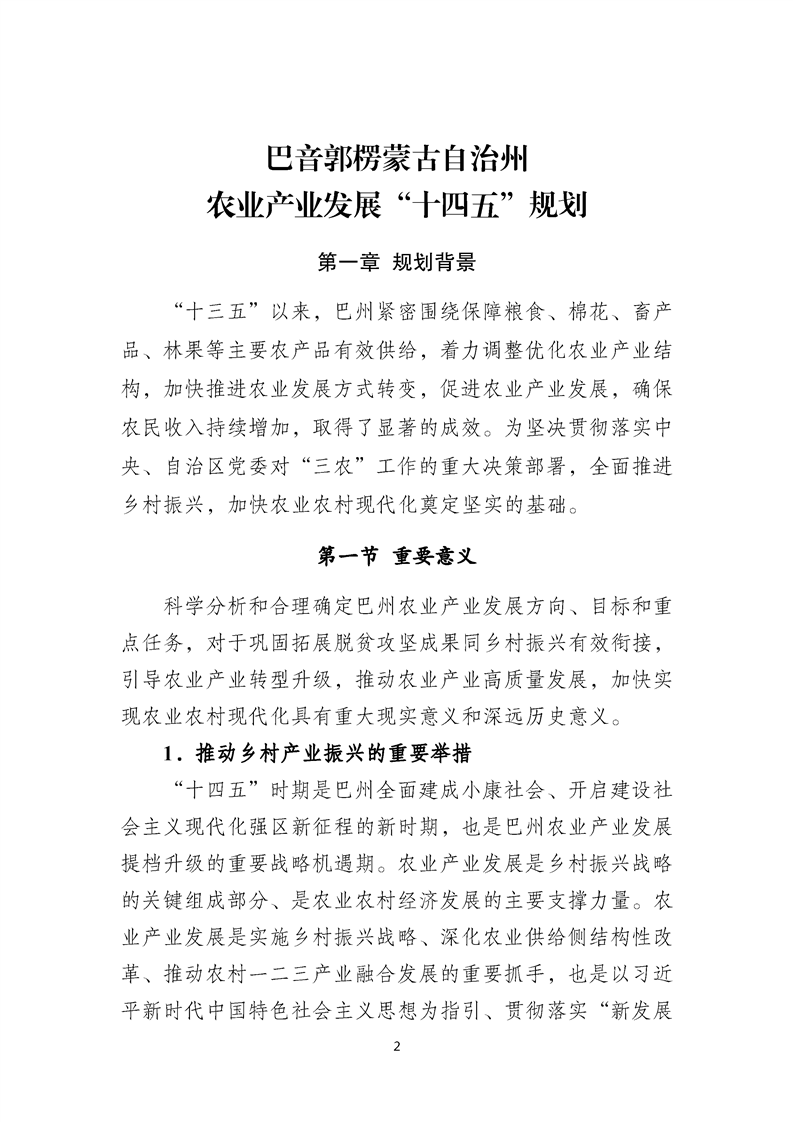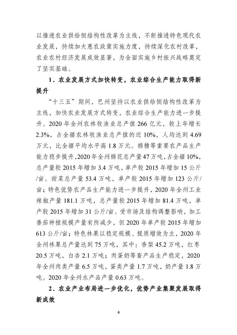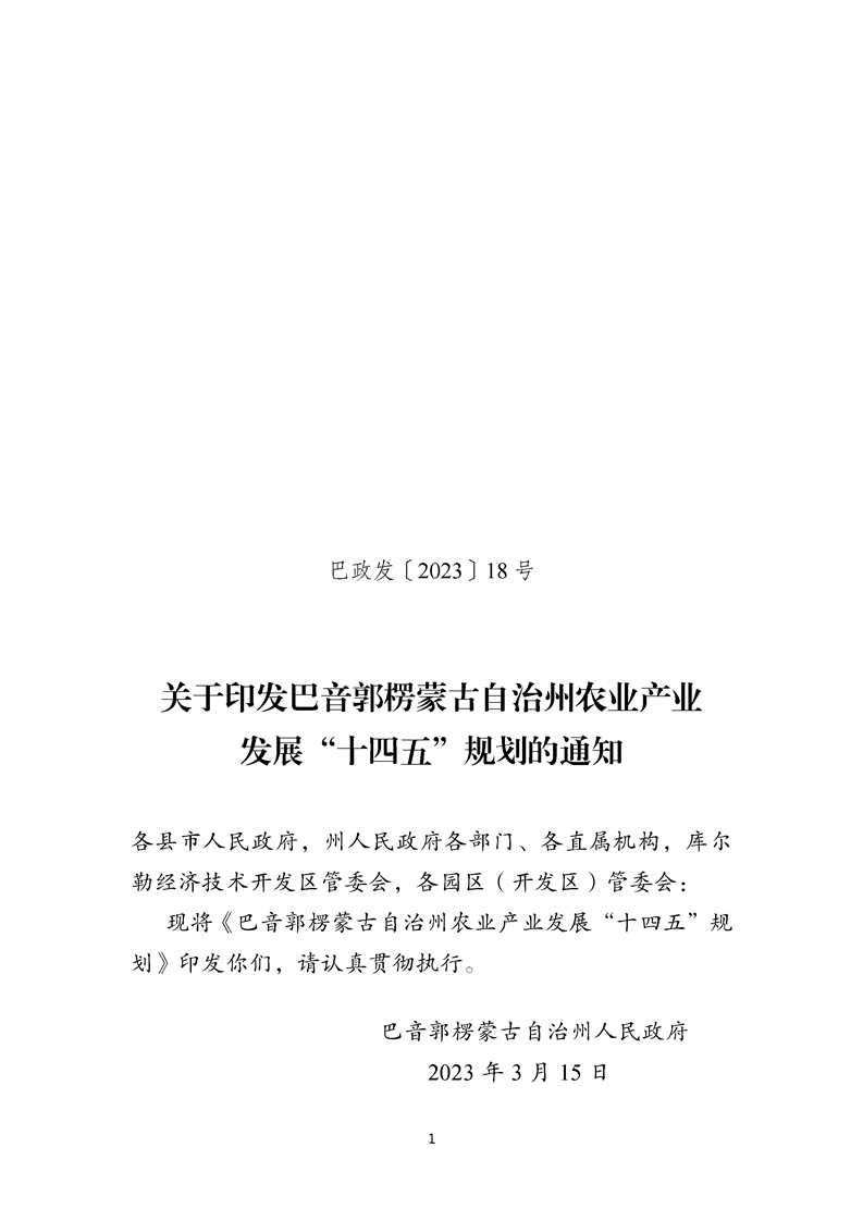 關于印發(fā)巴音郭楞蒙古自治州農(nóng)業(yè)產(chǎn)業(yè)發(fā)展“十四五”規(guī)劃的通知