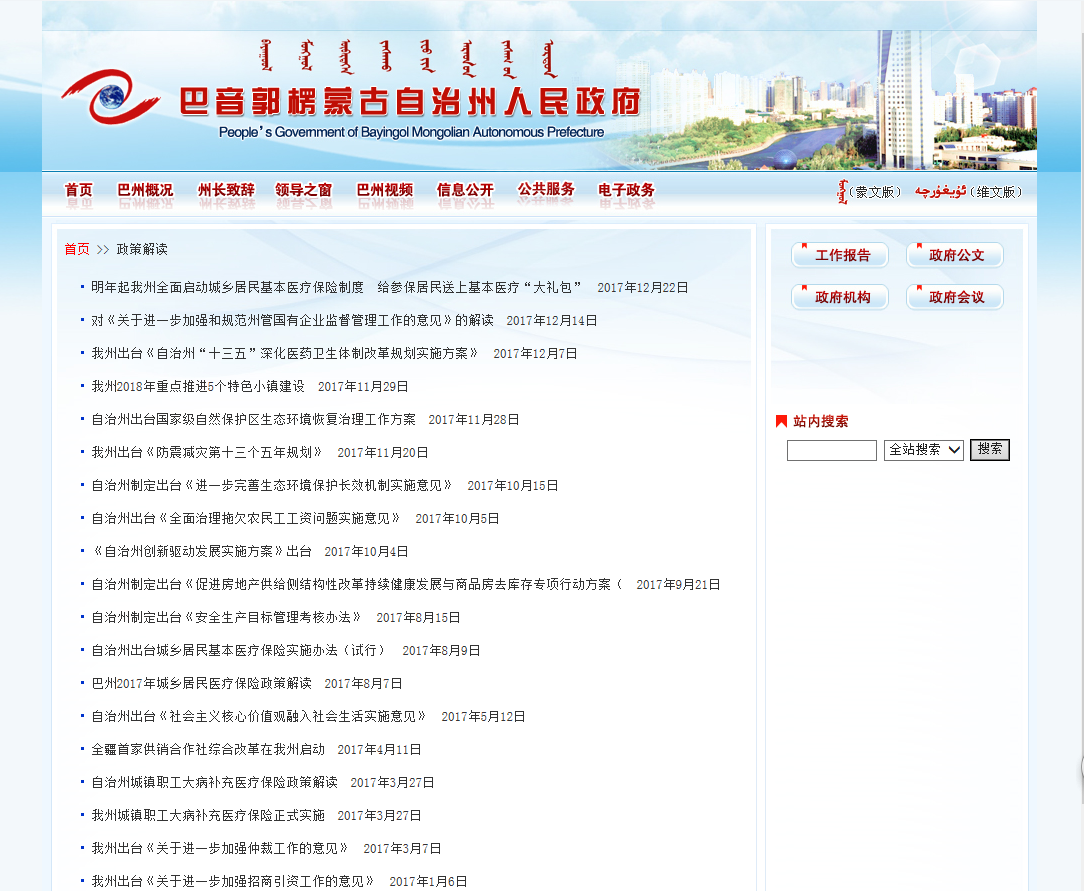 圖為 巴州人民政府網站政策解讀欄目