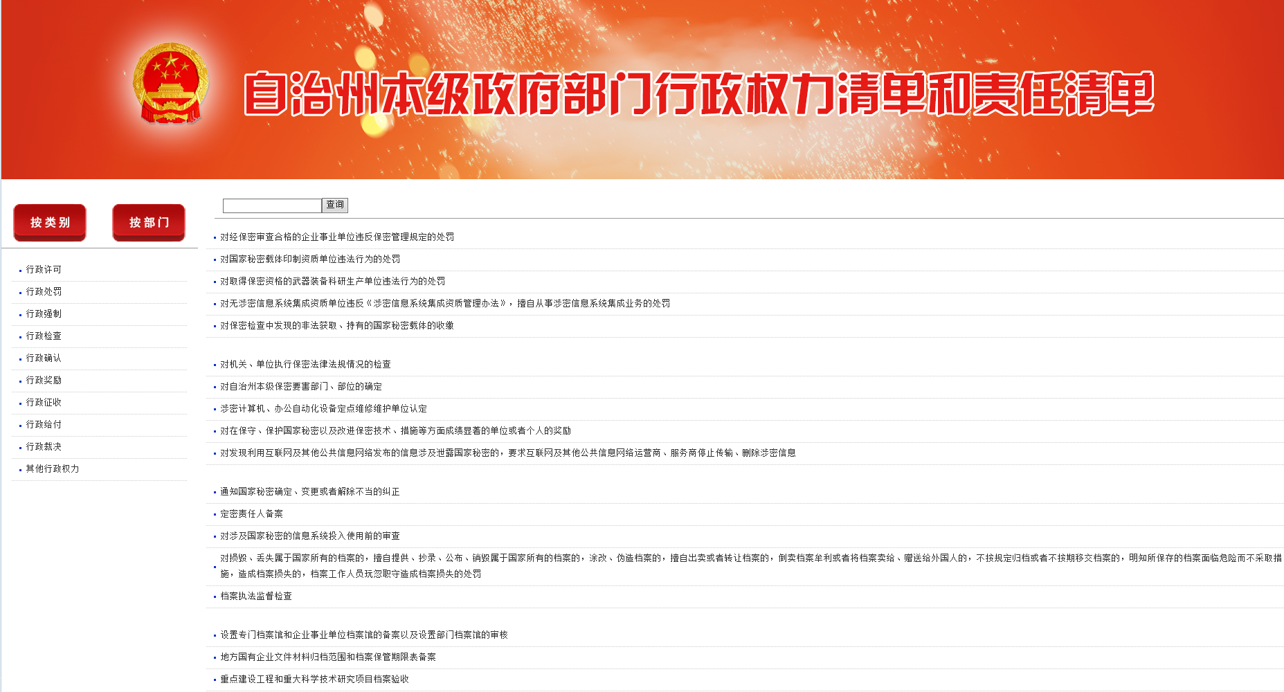 圖為 自治州本級政府部門權力清單和責任清單網站公開