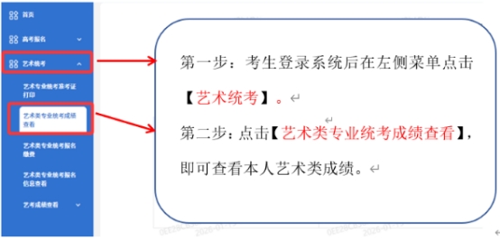 新疆2026年普通高等學校招生音樂類、舞蹈類、表(導)演類(戲劇影視導演方向、戲劇影視表演方向)、播音與主持類、美術與設計類、書法類專業統一考試成績及各科類專業統考合格分數線將于2026年1月26日17時公布。
