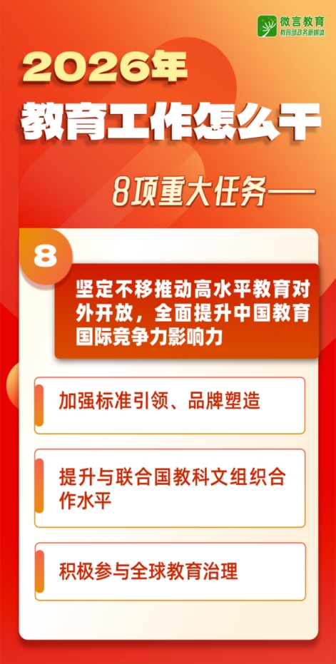 1月8日,2026年全國教育工作會議在北京召開。會議強調了哪些內容?2026年教育工作怎么干?組圖為你劃重點——