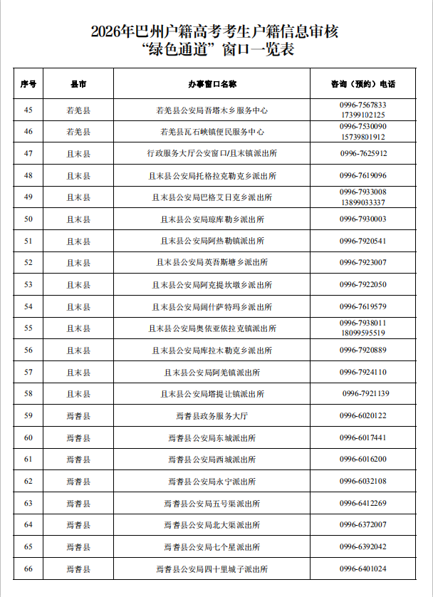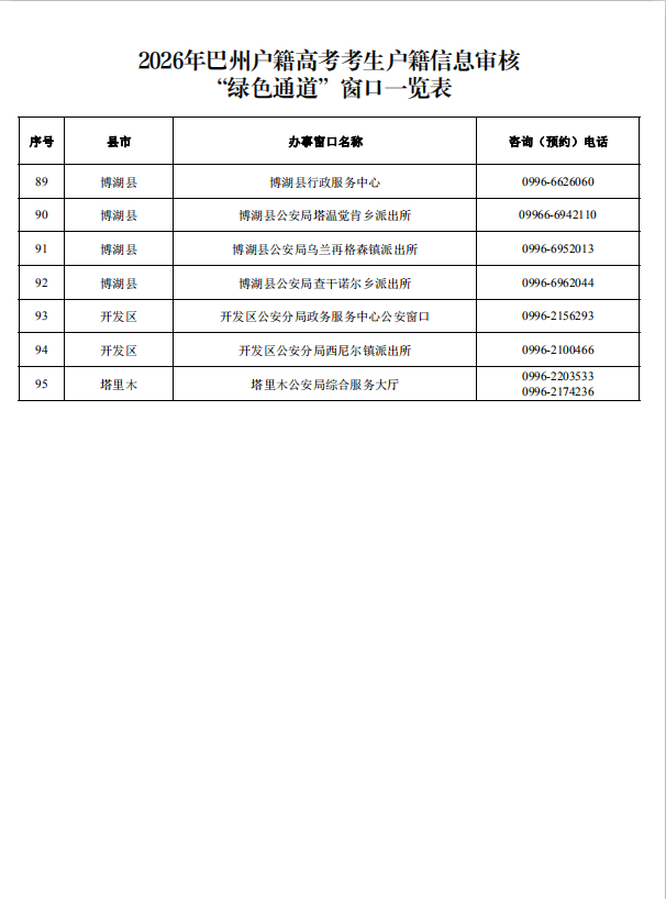 ??????????????????關于啟動2026年巴州戶籍高考考生戶籍信息審核“綠色通道”窗口的公告