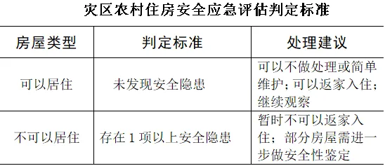對于“可以居住”類房屋,農戶在返家入住后,應注意觀察,一旦發現有安全方面的異常情況,應立即撤出并報告“村兩委”和鄉(鎮)政府,鄉(鎮)政府應組織技術力量進行核查,及時消除隱患。縣級住房和城鄉建設部門給予技術指導和支持。