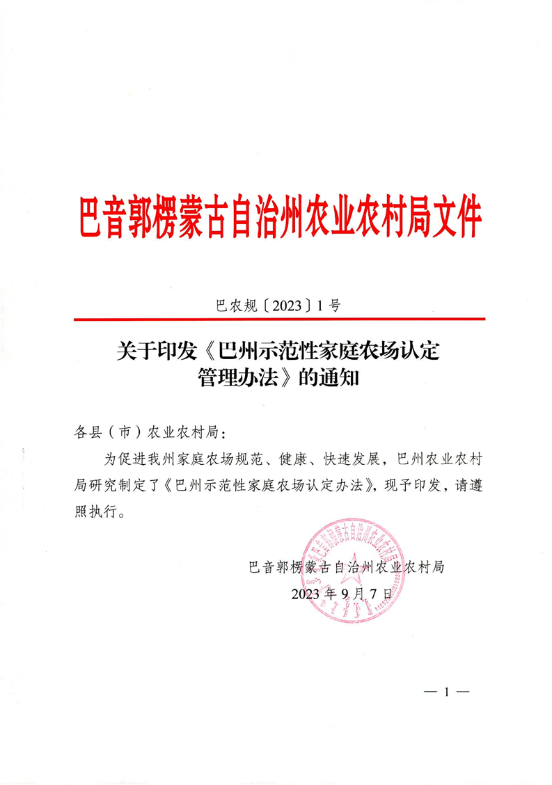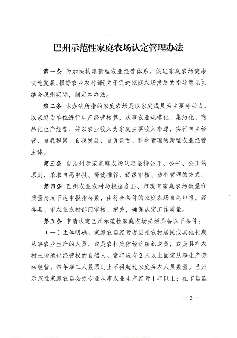 關(guān)于印發(fā)《巴州示范性家庭農(nóng)場(chǎng)認(rèn)定管理辦法》的通知