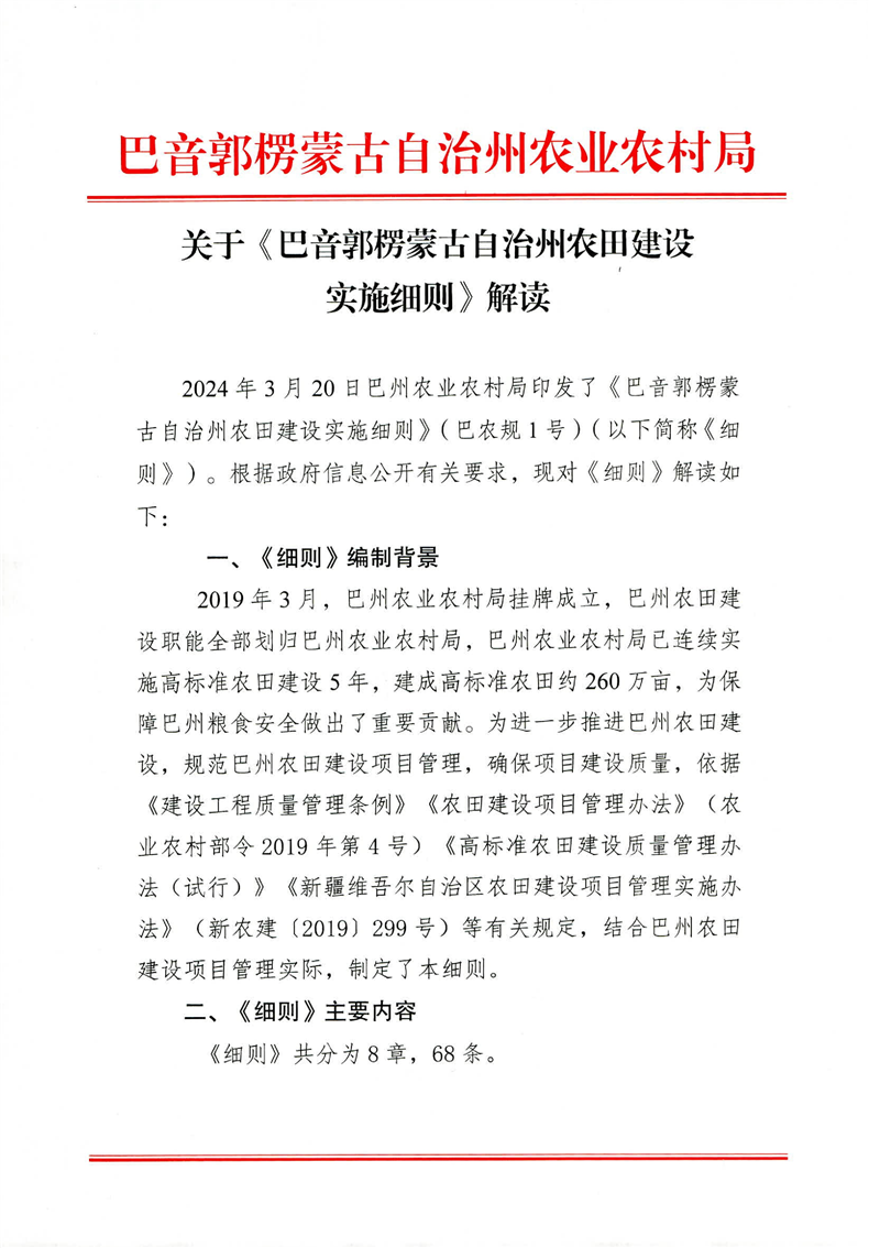 關(guān)于《巴音郭楞蒙古自治州農(nóng)田建設(shè)實(shí)施細(xì)則》解讀