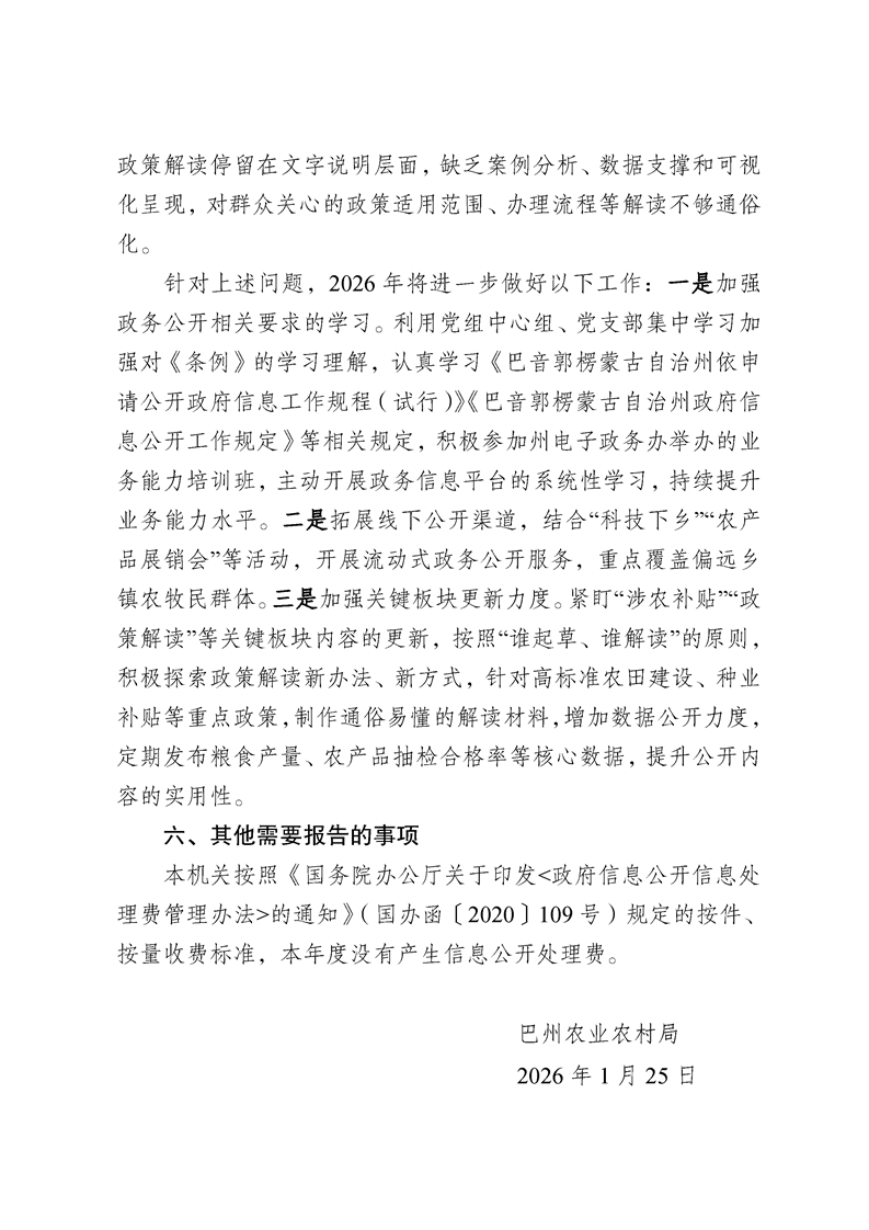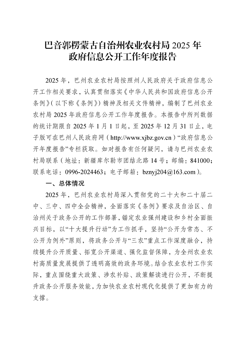 巴音郭楞蒙古自治州農(nóng)業(yè)農(nóng)村局2025年度政府信息公開工作年度報告
