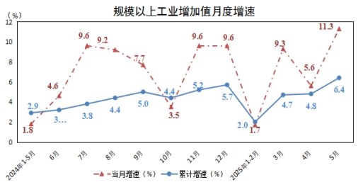 1-5月,規模以上工業企業增加值同比增長6.4%,增速較1-4月提高1.6個百分點。其中:石油工業增加值同比增長1.8%,拉動規上工業增長1.3個百分點;非石油工業增加值增長17.3%,拉動規上工業增長5.1個百分點。