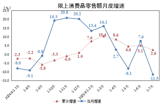 1-7月,全州實(shí)現(xiàn)限額以上社會(huì)消費(fèi)品零售總額73.61億元,同比增長(zhǎng)2.6%。