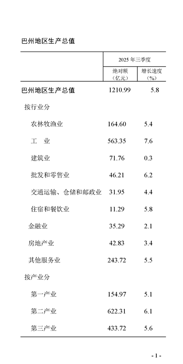 巴州統(tǒng)計(jì)月報(bào)(2025年10月)