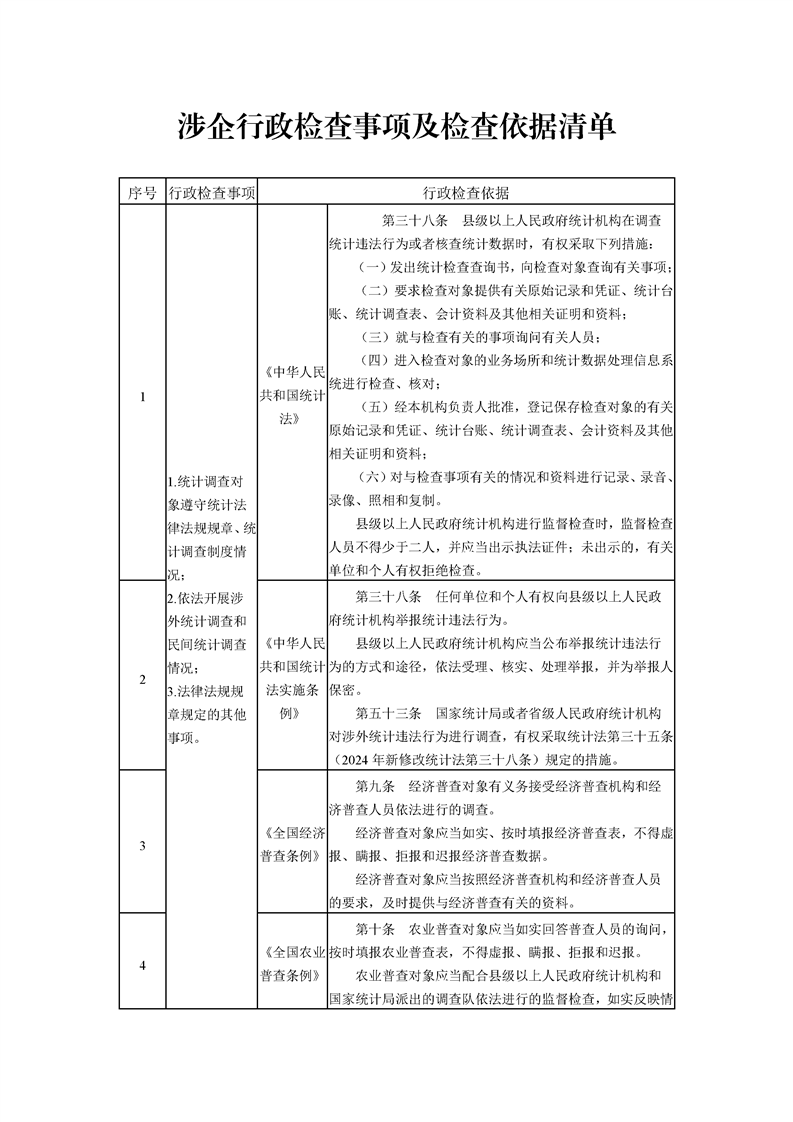 涉企行政檢查事項(xiàng)及檢查依據(jù)清單