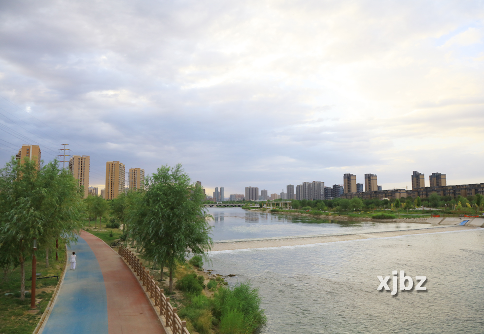 7月10日清晨,庫爾勒市上空云霞滿天,絢爛霞光將天際染成橘紅與墨藍交織的畫卷。伴隨漫天云霞,輕風拂過城市,帶來清涼。市民在晨光中漫步,感受自然饋贈的愜意。(薛兵 攝)