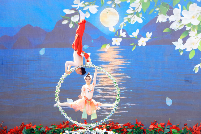 4月12日,第二師鐵門關(guān)市梨花系列文化旅游活動開幕。圖為開幕式文藝演出現(xiàn)場。(記者 薛兵 攝)