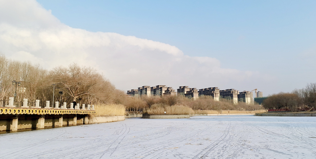 冬日的鴻雁河,是新區(qū)最動(dòng)人的景致。河面完全封凍,冰層在陽光下泛著柔和的光澤,成為市民休閑的天然樂園,孩子們的陣陣歡笑聲,打破了冬日的靜謐。河岸邊,成片的蘆葦早已披上金黃色的盛裝,葦穗在寒風(fēng)中輕舞,偶有飛鳥掠過,為這幅冬日畫卷增添了靈動(dòng)生機(jī)。作為景觀帶核心地標(biāo)的永安塔,巍然矗立在鴻雁河畔,塔身在藍(lán)天的映襯下更顯古樸莊重,是市民與游客打卡留影的首選之地。