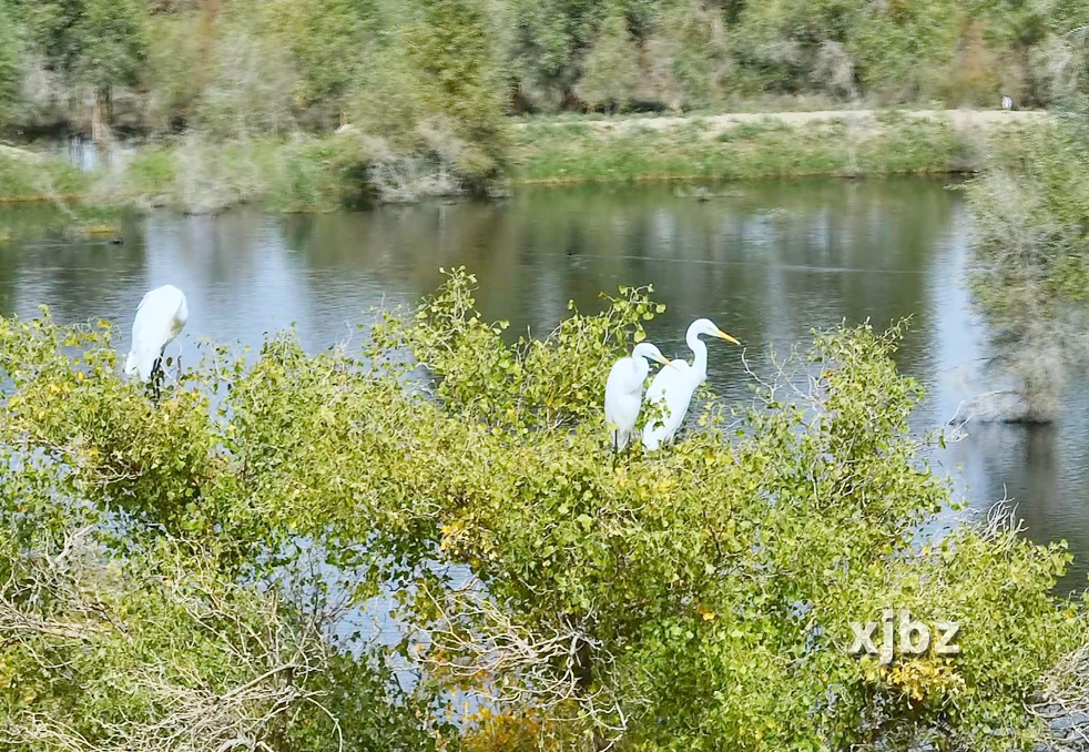 10月16日,候鳥在輪臺縣塔里木胡楊林公園內(nèi)的胡楊枝頭棲息。金秋十月,位于塔克拉瑪干沙漠東北緣的輪臺縣百萬畝胡楊林迎來南遷候鳥,它們或翱翔于藍天,或嬉戲于水面,或棲息在胡楊枝丫上,為這片古老的原始胡楊林注入靈動生機。(文/記者 劉雨珊 圖/通訊員 侯憲偉)