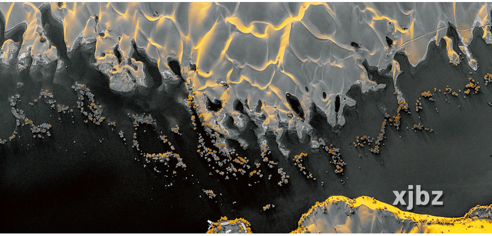 在長期風沙侵蝕與流沙堆積的作用下,沙漠湖泊逐步形成環狀沙丘與水體共生的獨特形態,而沙紋走向與光影投射的巧妙契合,更讓“眼眸”質感愈發逼真。(文/楊柳青 圖/馬立新)