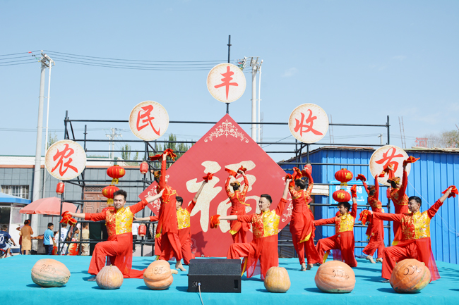 輪臺縣陽霞鎮2025年農民豐收節上的歌舞表演。(通訊員 劉厚偉 攝)