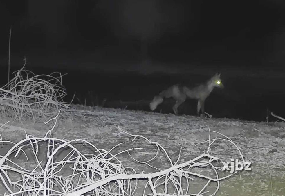 夜色掩映之下,一只赤狐悄無聲息地出沒在胡楊林中。(新疆塔里木河胡楊林生態系統國家定位觀測研究站紅外相機拍攝)